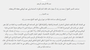 طلب مساعدة مالية من الشيخ محمد بن يزيد
